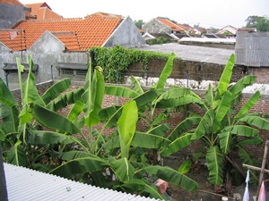 Di belakang rumah, saya tanam pisang Kepok. Saya tanam jenis pisang ini karena enak kalau digoreng. Batangnya besar dan tinggi. Sebelumnya sudah ada pisang Susu. Sebaliknya dengan pisang Kepok, pisang Susu pohonnya kecil dan rendah.