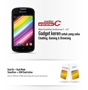 (ref: smartfren.com/ina/andromax-c)Alasan saya beli ponsel ini karena adanya fitur ini: dual mode. Ada CDMA, yakni hanya Smartfren dan GSM. Kalau tidak dual mode, saya tidak akan meliriknya. Karena pengalaman saya cakupan Smartfren tidak cukup luas. Kalau dibawa mudik, bisa-bisa hanya buat main game saja. Juga di rumah saya cakupan Smartfren hanya 2000 1x. Masih lemot.